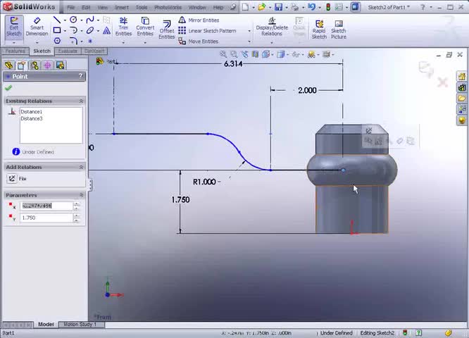 Exercise 4 - Sweeps, Plane perpendicular to a curve creation, sketch chamfer, circular patterns