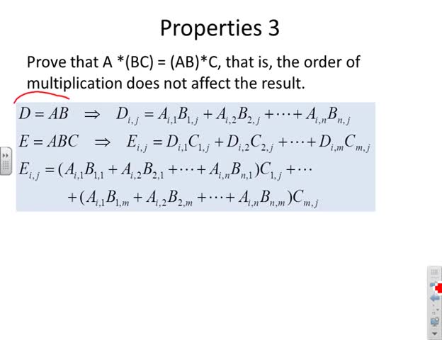 It is important the users understand some key properties associated to matrix multiplication as this understanding can be used to simplify practical problems...