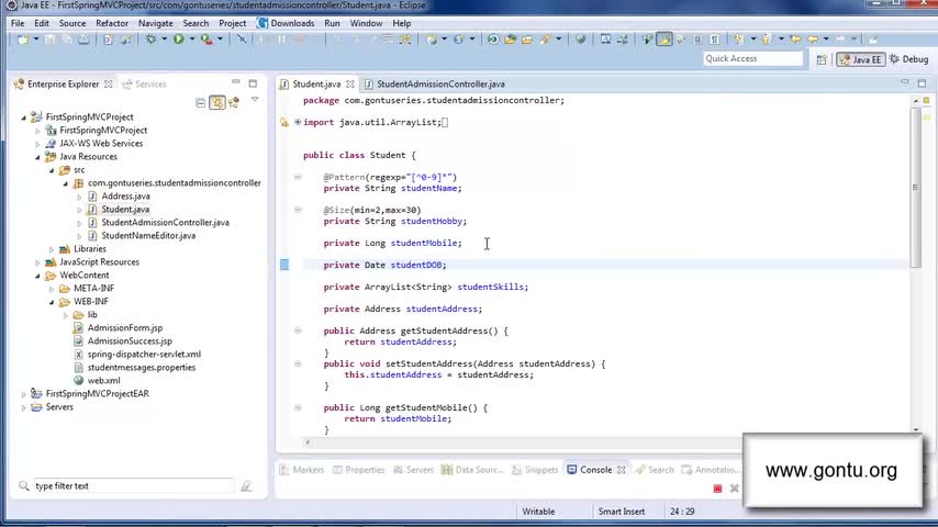 http://www.gontu.org in this tutorial, we will learn about @Pattern, @Past, @Max and some more form Validation annotations. Guys, I would reccommend watching...