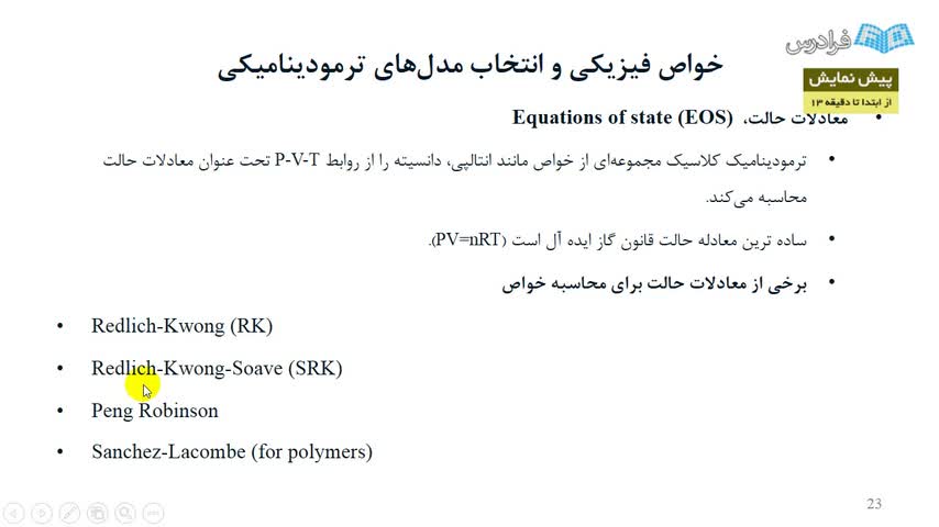 درس دوم: آشنایی با مدل های ترمودینامیکی و آنالیز خواص