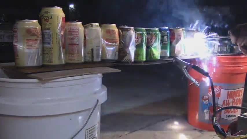 electricity, cutting, aluminum cans, aluminum, knife, electric cutting, electric knife, challenge, plasma, welder, 2000 watts, burning, hot knife, satisfying...