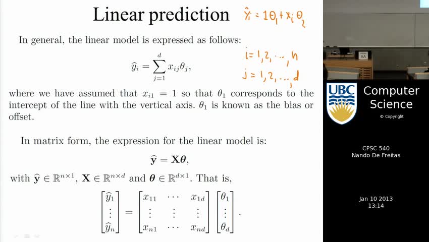 یادگیزی, ماشین, nando de freitas, machine learning, least squares, linear prediction, optimization, regression