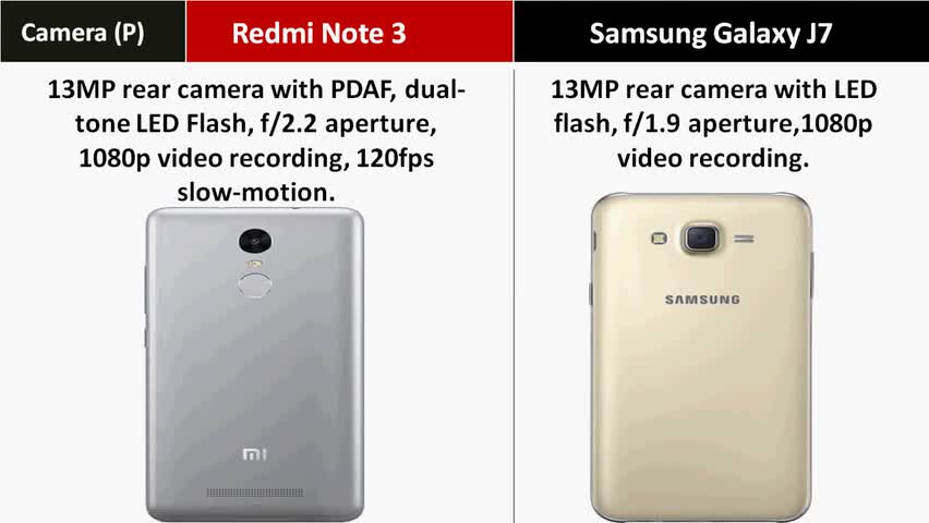 Xiaomi Redmi Note 3 vs Samsung Galaxy J7 - Full Specifications ,features ,Camera ,Processor ,Storage capacity and Price Comparison Which is better and faster...