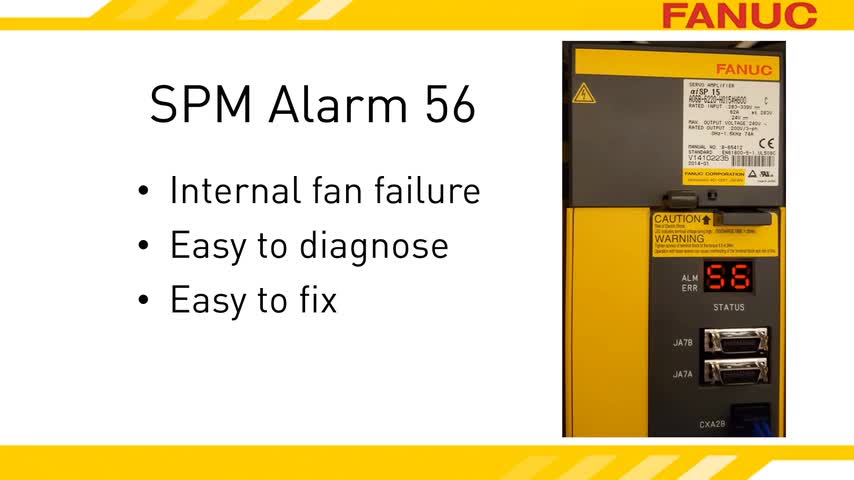 Spindle Amplifier Alarm 56 CNC Alarm SP9056 Applies to Alpha i Spindle Alarm 56 on the Alpha i spindle amplifier indicates a failure of the internal cooling ...
