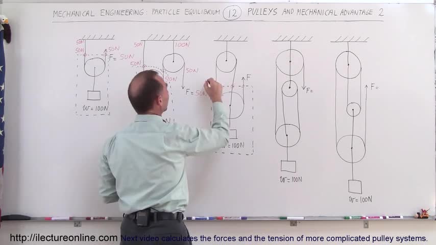 Visit http://ilectureonline.com for more math and science lectures! In this video I will calculate the forces and the tension of pulley systems. Next video i...