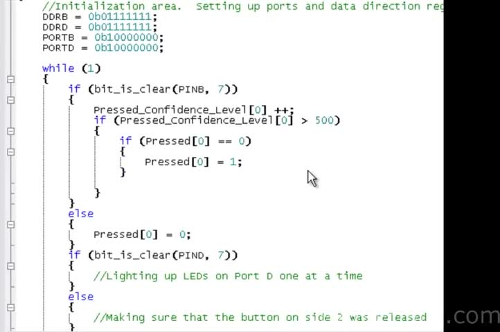 avr, atmega, tutorial, atmega32, beginner, electronics, LED, button, switch, array, arrays, encapsulation, code, blocks, void, int, variables, integer, robot...