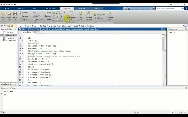 پروژه تحلیل تیر نامعین با تکیه گاه یک سر گیردار در MATLAB در لینک زیر:https://takcivil.com/analysis-of-an-indeterminate-beam-matlab