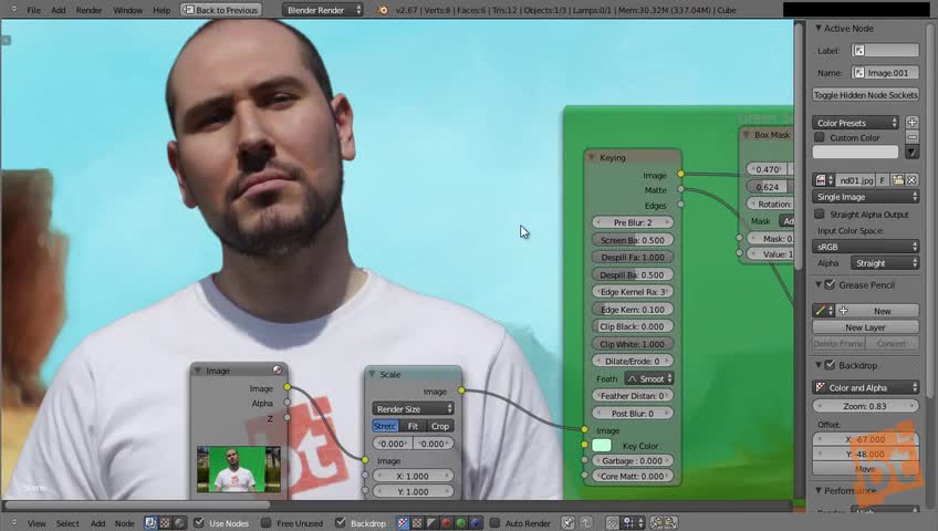 green, screen, chroma, key, keying, blender, compositing, foreground, background, lightwrapp, removal, mask, node, compositor, blendtuts, tutorial, oliver, v...