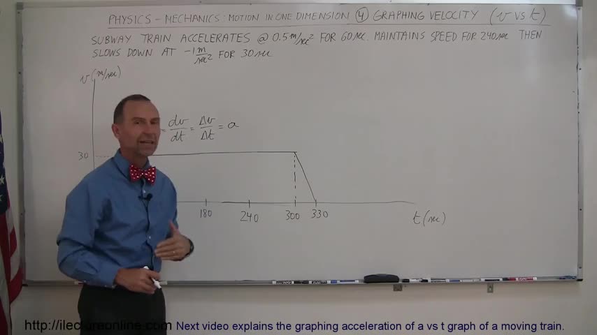 Visit http://ilectureonline.com for more math and science lectures! In this video I will explain the graphing velocity of v vs t graph of an accelerating and...