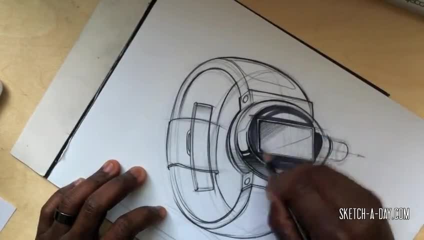 Sketch presentation of a watch. Completed in 21 minutes with pencil, marker and marker paper.