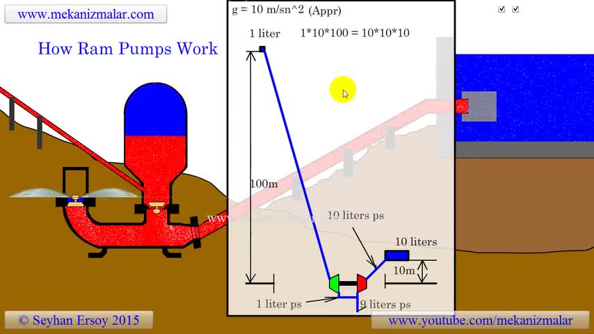 Here is a simulation of a ram pump. These ingenious devices will let you pump water to higher elevation without any external power requirements, but of cours...