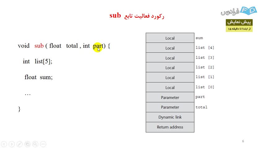 پیاده سازی زیر برنامه شامل متغیر پویای پشته ای