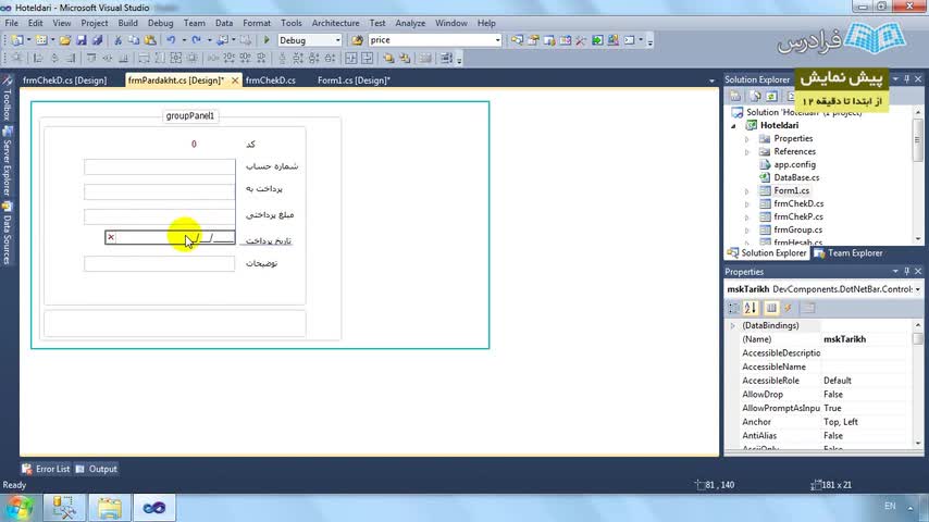 طراحی و کد نویسی فرم اطلاعات پایه هتل
