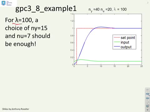 Draws together the insights of the previous 7 videos and proposes a systematic choice for the input and output horizons to ensure that the GPC optimisation i...