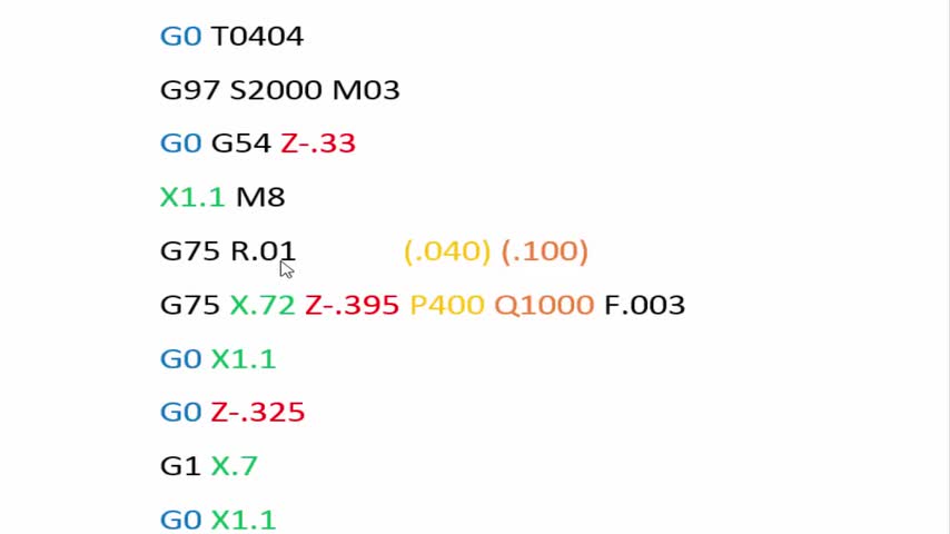Learn how the G75 canned cycle is used to rough a groove on a CNC lathe followed by a finish pass.