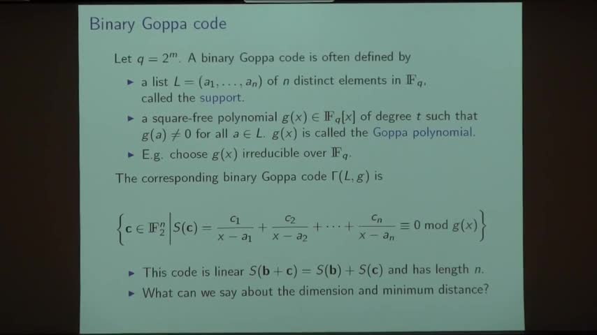 Title: Code-Based Cryptography Speaker: Tanja Lange (Technische Universiteit Eindhoven) 2016 Post-Quantum Cryptography Winter School https://pqcrypto2016.jp/...