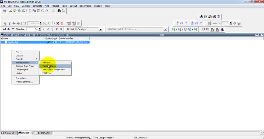 A simple way to simulate a Testbench written in VHDL in ModelSim.