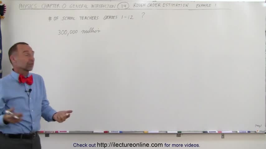 Visit http://ilectureonline.com for more math and science lectures! In this video I give a rough estimate the total number 1st though 12th grade teachers in ...