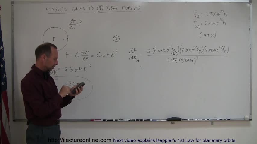 Visit http://ilectureonline.com for more math and science lectures! In this video I will calculate the the tidal forces.