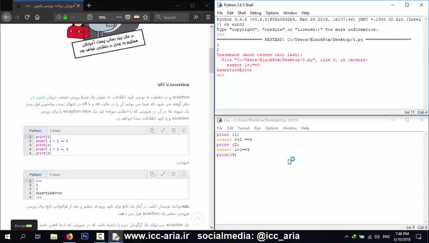 در این قسمت از سری آموزش برنامه نویسی پایتون به بررسی نحوه استفاده از Assertion در پایتون می پردازیم.برای درک بهتر مطالب به وبسایت www.icc-aria.ir مراجعه نمایید.
