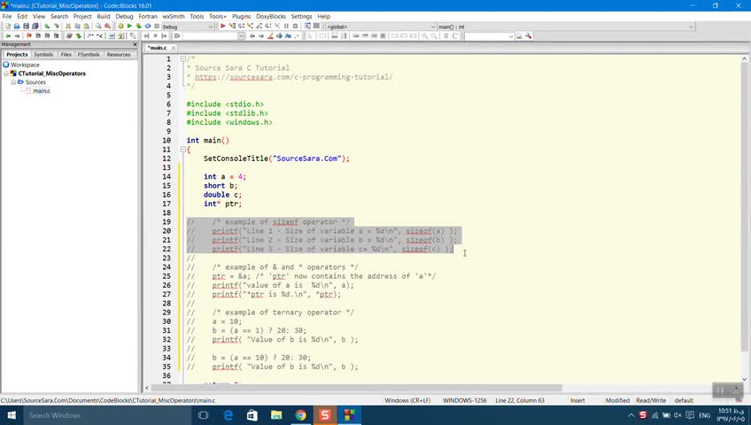 آشنایی با عملگرهای متفرقه در زبان C در لینک زیر:https://sourcesara.com/misc-operators-in-c