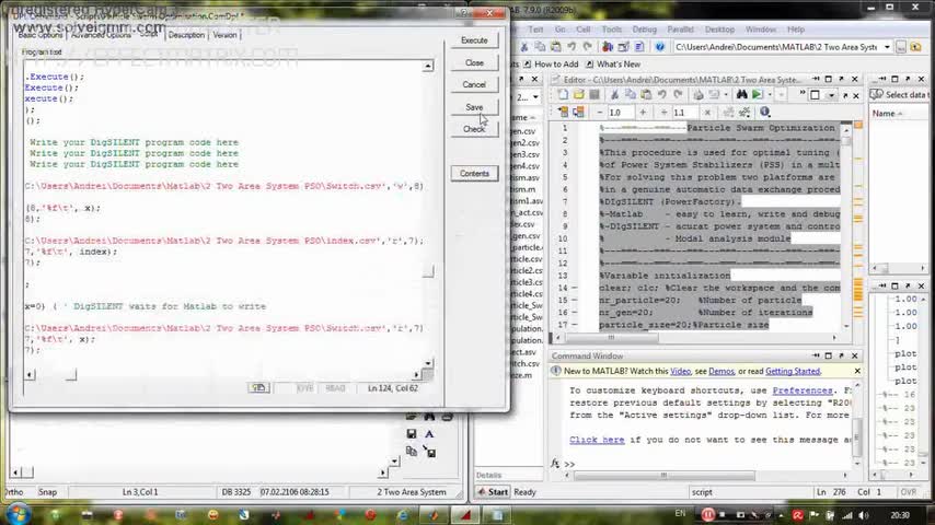 Example of PSS parameters optimization using PSO algorithm. The optimization process is made using simultaneously Matlab and DIgSILENT. The two files (the .p...