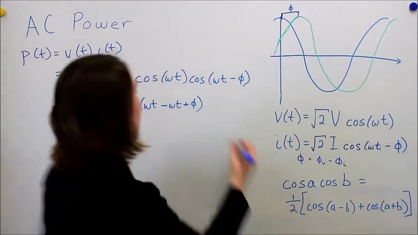 Derivation of the instantaneous and average power for ac power, where there is a phase shaft between the voltage and current waveforms.