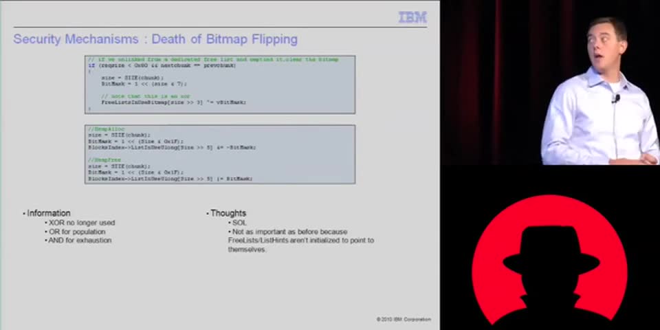 This talk covers the following: * A detailed review of previous Windows memory managers * The underlying foundation for the newly created Low-Fragmentation heap * Complete coverage of the allocation and free algorithms, along with all their associated data structures * Heap determinism and meta-data corruption
