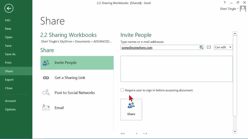 Learn how to share workbooks in this Microsoft Office Excel 2013 training video. Contact K Alliance for more info. http://www.kalliance.com/ - 1.800.330.91...