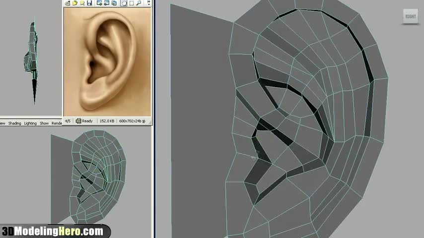 3d modeling tutorial, how to model a face, how to model an ear, ear modeling, box modeling, 3d modeling, modeling in maya, how to build a face, low poly mode...