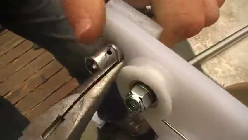 The jig comprises of 3 tensioner pulleys (these are just concave roller bearings for sliding doors - available at any good hardware store) that create the tension between the bar and the wire so that I don't have to.