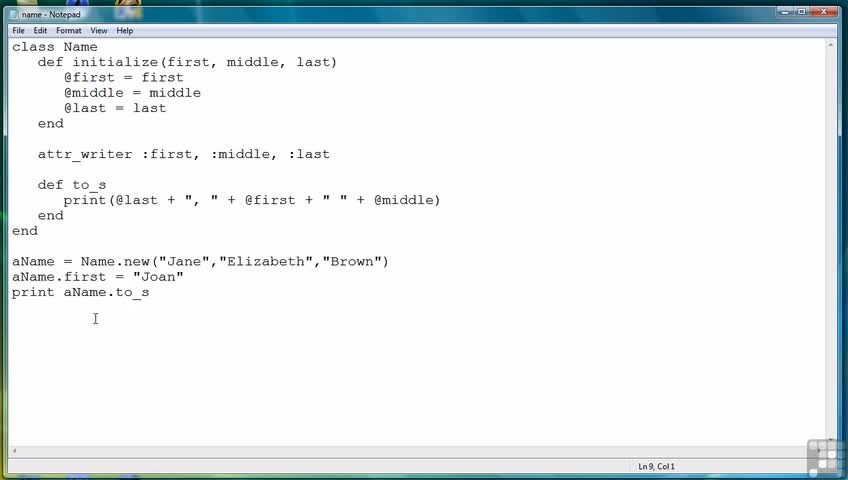 فیلم آموزش زبان برنامه نویسی روبی Ruby - زبان انگلیسی - بخش 43 0804.Defining A Class - Part 4