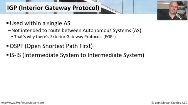 network+, certification, comptia, free, professor messer, autonomous system, AS, IGP, EGP, interior gateway, exterior gateway