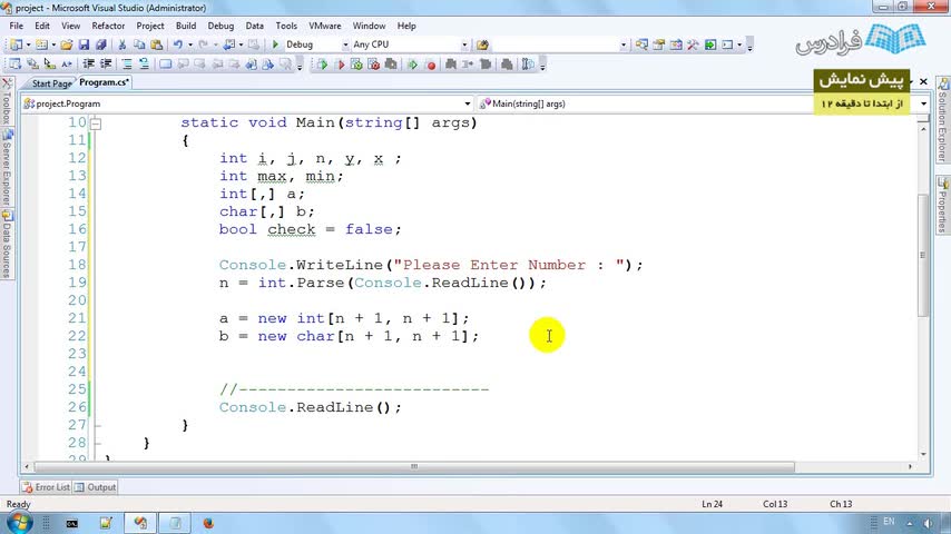 آموزش کار با آرایه های یک بعدی و دو بعدی (Matrix)