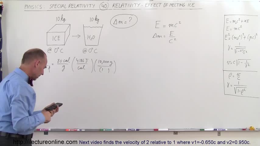 Visit http://ilectureonline.com for more math and science lectures! In this video I will find the change in mass of 10kg of melted ice due to the latent heat...