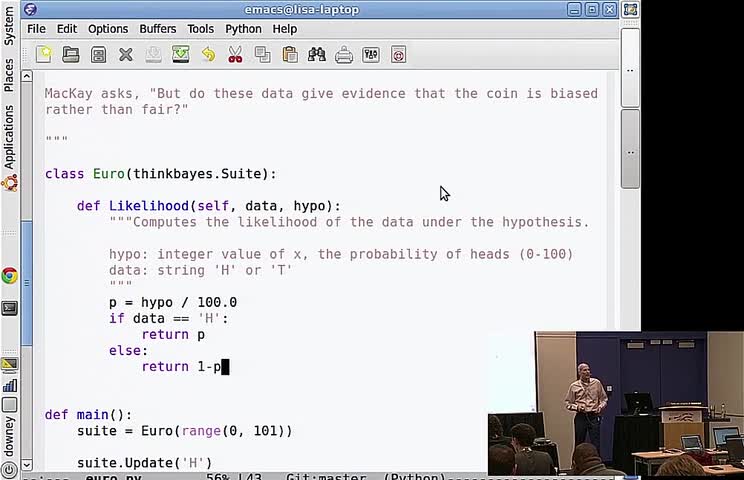 "Speaker: Allen Downey An introduction to Bayesian statistics using Python. Bayesian statistics are usually presented mathematically, but many of the ideas a...