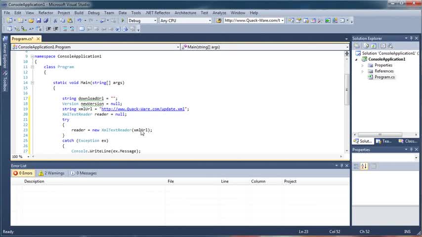 In this tutorial I show you how to create an application that has a feature to check for updates and then download them in C# C Sharp Visual Studio 2010 WEBS...