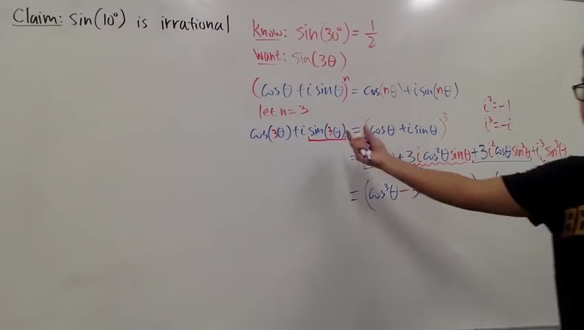 Classic question, proving sin(10 degrees) is irrational,