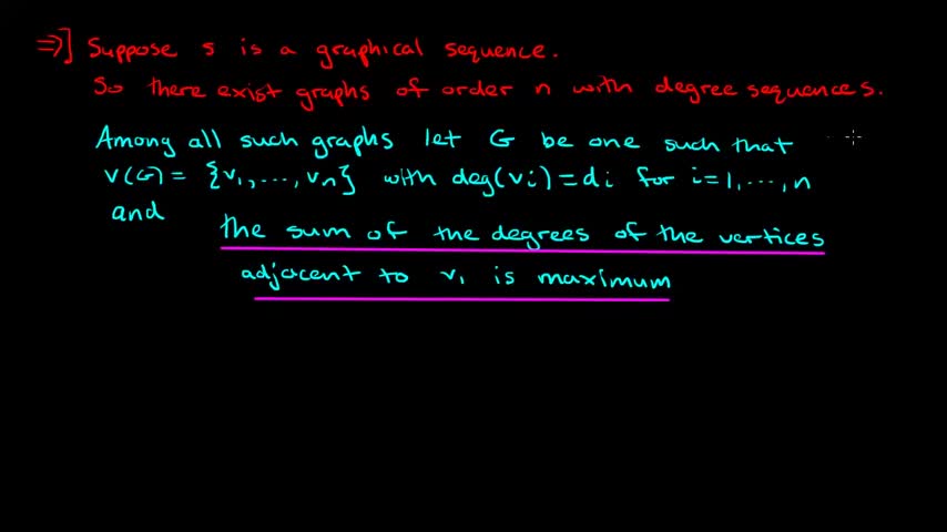 In this video I provide a proof of the Havel-Hakimi Theorem which gives a necessary and sufficient condition for a sequence of non-negative integers to be gr...