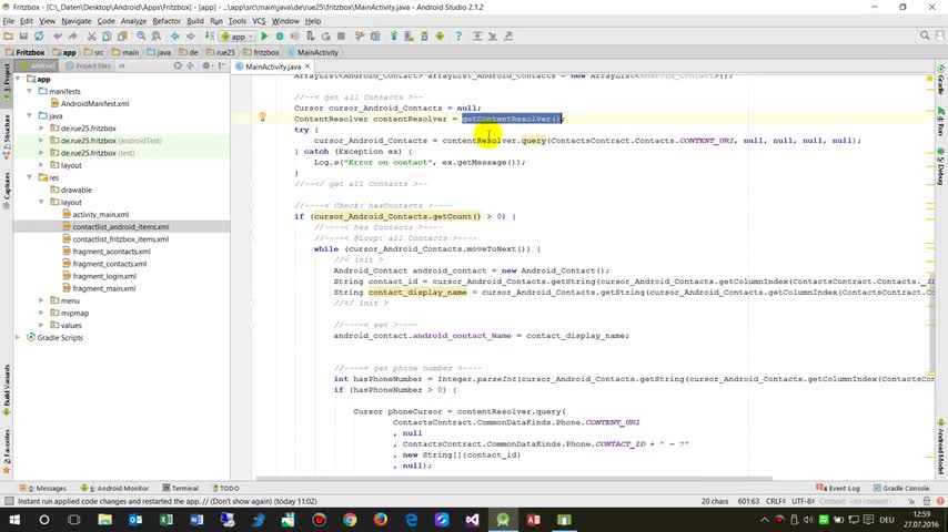 آموزش, اندروید, استدیو, مخاطبین, Windows;Android