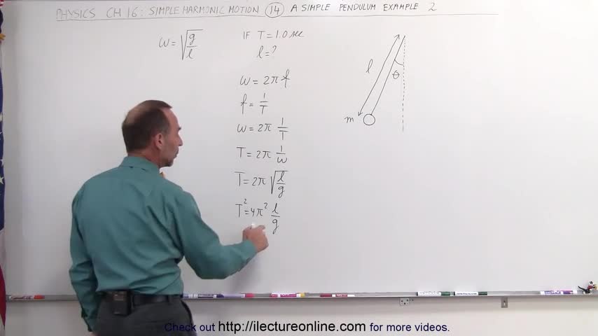 Visit http://ilectureonline.com for more math and science lectures! In this video I will find l=? of a simple pendulum with a period of T=1.0s. Next video ca...