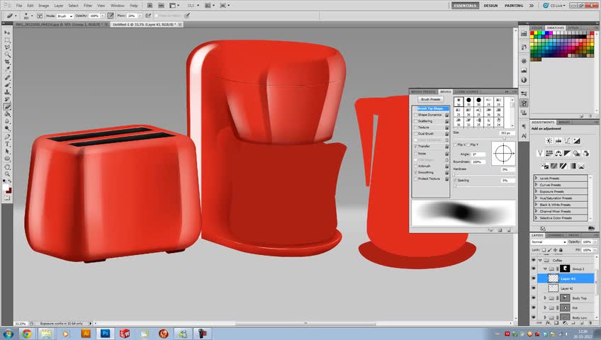 Product line featuring a toaster, coffemachine and a water kettle. This rendering took little over 3 hours to make. It was made using Adobe Photoshop CS5, an...