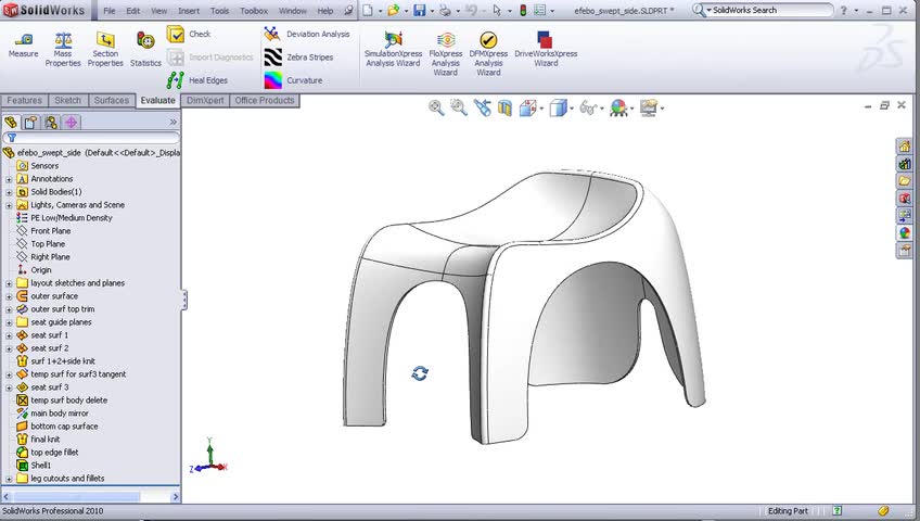 This first part gives and overview of the chair shape and the layout sketches that will be used to drive all of the features.