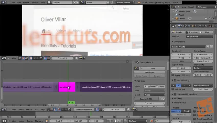 blender, 3d, video, editor, editing, sequencer, tutorial, blendtuts, image, sequence, trim, effects, transition, cross, fade, animation, transform