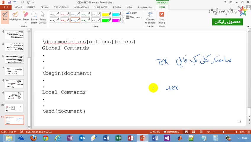تعریف نوع نوشته با استفاده از دستور documentclass