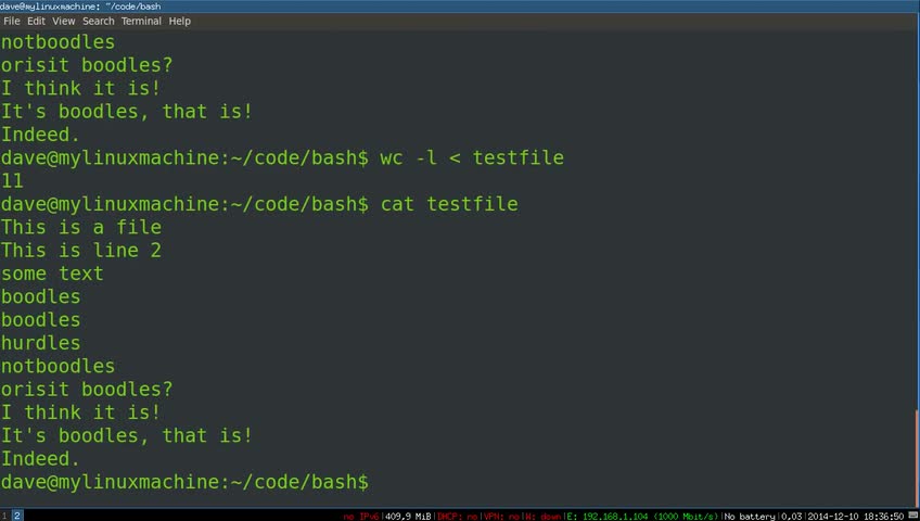 Bash basics, including how input/output redirection works in bash, logical AND, logical OR, appending vs overwriting files with output, some coverage of file...