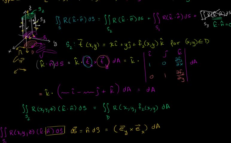 More evaluation of the surface integral Watch the next lesson: https://www.khanacademy.org/math/multivariable-calculus/divergence_theorem_topic/divergence_th...