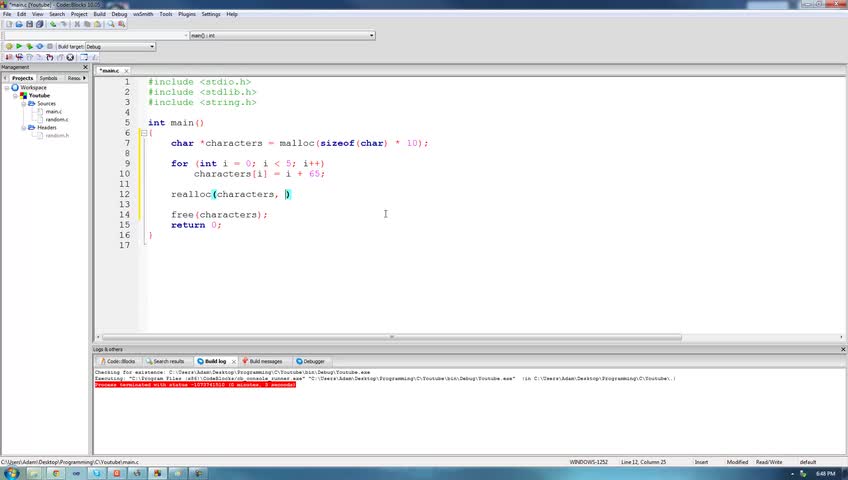 C Programming Tutorial 67, Memory Functions pt.5 realloc