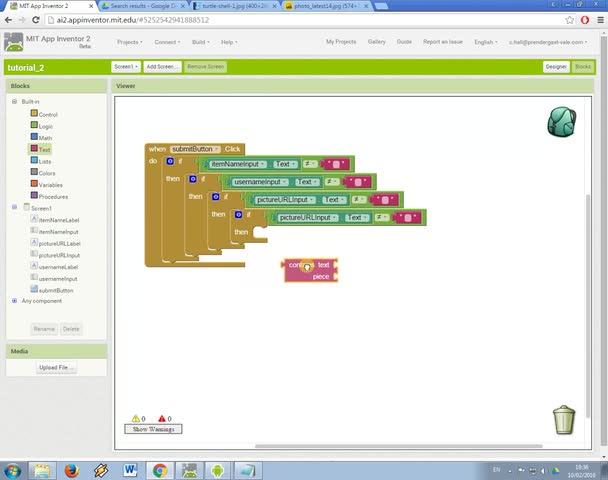 App Inventor 2 tutorial.Learning how to create a form to allow the user to input data into the app, and making the app validate that the data is OK before continuing.
