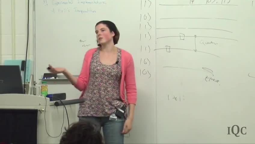 Sarah Croke, a postdoctoral fellow at Waterloo's Perimeter Institute for Theoretical Physics, lectures at the Institute for Quantum Computing on the physics ...